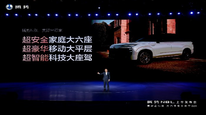 腾势总经理李慧用三句话总结N8L,就是:超安全家庭大六座、超豪华移动大平层、超智能科技大座驾,以硬核技术实力重塑家庭大六座豪华SUV新标准,与每个热爱生活的家庭一起奔赴美好。