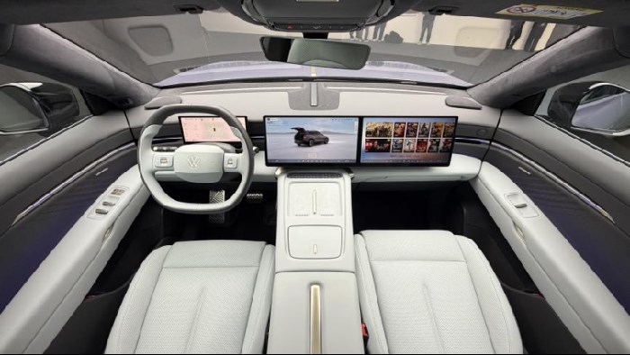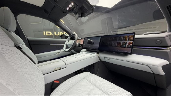 如果说外观上已经打破了我对德系车的固有认知,那与众08的内饰便把我的认知打破的“更加彻底”,与外观一样,它的内饰也充满了十足的未来感,首先这台车的仪表台仿佛“隐身”了一半,你能看见它的阶梯型设计,全液晶仪表和中控屏都采用了悬浮式设计,在我印象里这种造型的仪表台也就存在于一些概念车上,量产车应该也是头一遭。