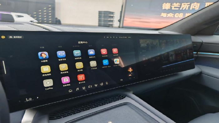 同时屏幕的尺寸也“很不大众”,与众08配备了10英寸的高清仪表盘和双14.96英寸的高清联屏,基本覆盖了眼前的所有区域,而且很细节的一点是,副驾驶区域的屏幕带有防窥膜,防止主驾分心并杜绝反光。