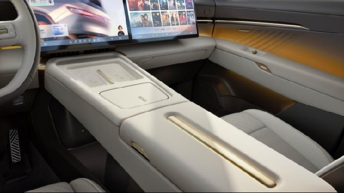 而在内饰的其它方面,与众08也与外观一样,简约但不简单,很多功能性组件都没有选择赤裸裸地展现出来,而是选择和内饰的整体设计融为一体,比如悬浮式的车门扶手、间接式氛围灯,隐藏的电动空调出风口和音响,以及无边框的内后视镜。